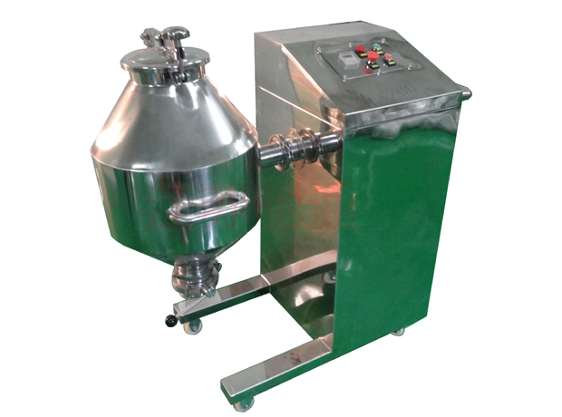 W型雙錐混合機由雙錐筒、機械密封、機架、減速傳動、攪拌葉片等構(gòu)成。該機的工作過程是:把需混合的幾種物料通過真空輸送或人工加料投放到雙錐體內(nèi),上好筒蓋,開起設(shè)備,雙錐筒及攪拌葉片同時轉(zhuǎn)動,旋轉(zhuǎn)的雙錐筒使筒體內(nèi)物料產(chǎn)生紊亂翻滾混合,高速旋轉(zhuǎn)的攪拌葉片打碎結(jié)團物料,使物料在筒體內(nèi)快速混合。W型雙錐混料機工作過程無死角,無沉積,可使混合的物料快速達到均勻一致的效果。